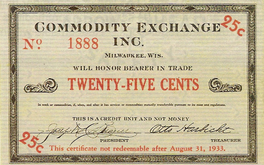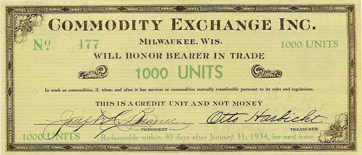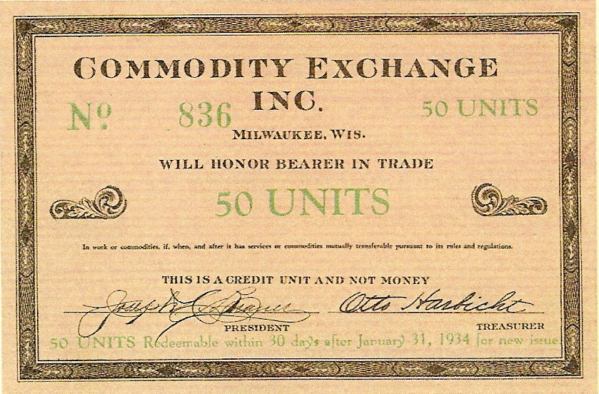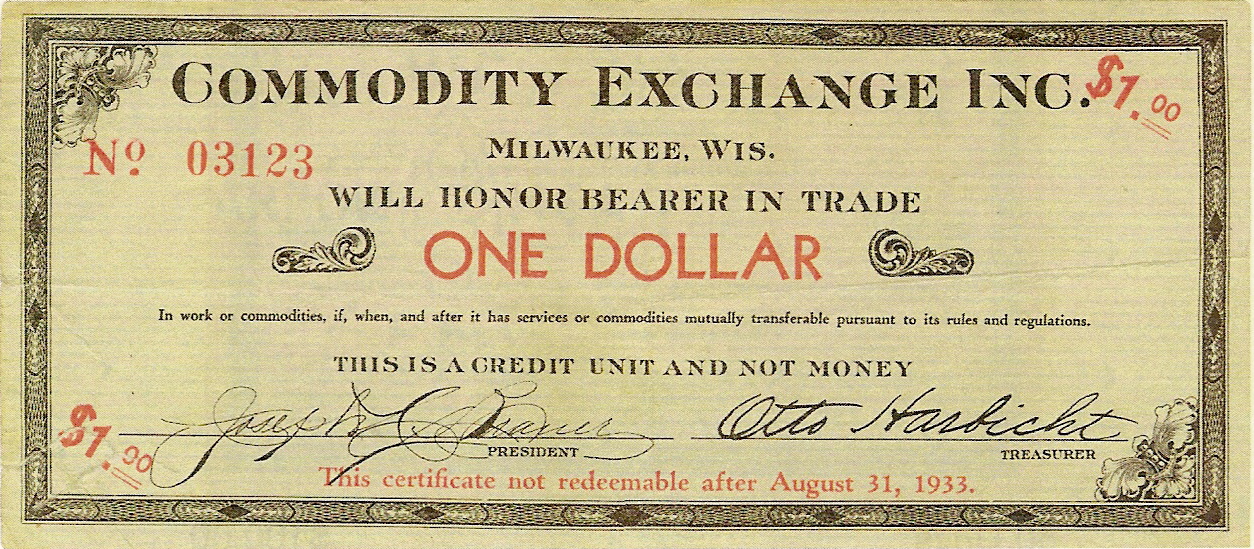 The Commodity Exchange, Inc. was one of two similarly named organizations (the Unemployed Labor and Commodity Exchange, Inc. was the other) founded in February 1933 as barter exchanges.